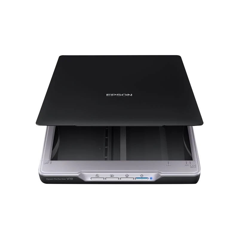 Model V19 wyposażony został w cztery przyciski, dzięki którym można łatwo i szybko skanować, kopiować, udostępniać i konwertować zdjęcia i dokumenty do wielostronicowych plików PDF z możliwością przeszukiwania - wszystko za jednym naciśnięciem przycisku. Aby szybciej wykonywać powtarzalne zadania, można także przypisać gotowe konfiguracje skanowania do wszystkich czterech przycisków. Dzięki temu można zapisywać ustawienia takie jak rozdzielczość, format czy lokalizacja zapisu. Skaner posiada również zdejmowaną pokrywę umożliwiającą skanowanie obszernych książek, albumów ze zdjęciami i innych łączonych materiałów. Zdjęcia można łatwo udostępniać rodzinie i znajomym, skanując je bezpośrednio do serwisów Facebook i Picasa.