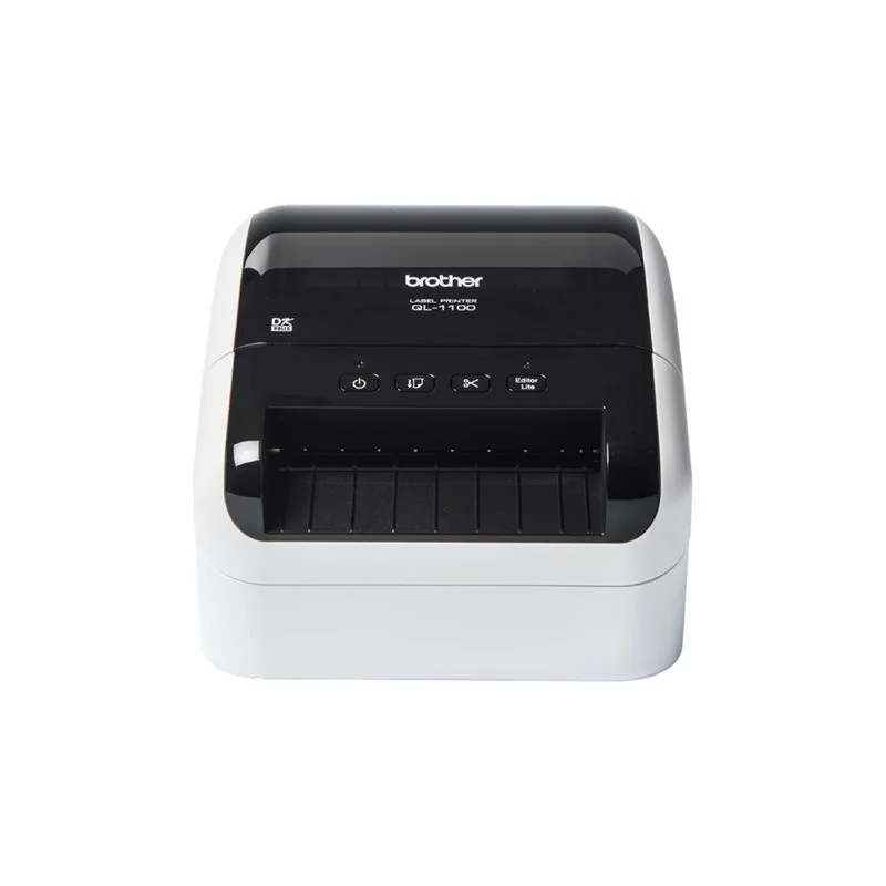 Brother QL-1100c to szybka, profesjonalna drukarka etykiet zaprojektowana do drukowania etykiet o szerokości do 4" (103,6 mm). Jest to urządzenie klasy biznesowej, które umożliwia tworzenie przystępnych cenowo papierowych etykiet samoprzylepnych na paczki, koperty i przesyłki pocztowe. Dzięki bezpośredniej technologii druku termicznego i rozdzielczości 300 x 300 dpi, QL-1100c zapewnia wyraźne, profesjonalne etykiety bez konieczności stosowania tuszu czy tonera. Urządzenie jest idealnym rozwiązaniem dla sprzedawców internetowych, małych firm wysyłkowych oraz biur domowych, które potrzebują niezawodnego systemu etykietowania z możliwością podłączenia do komputera.