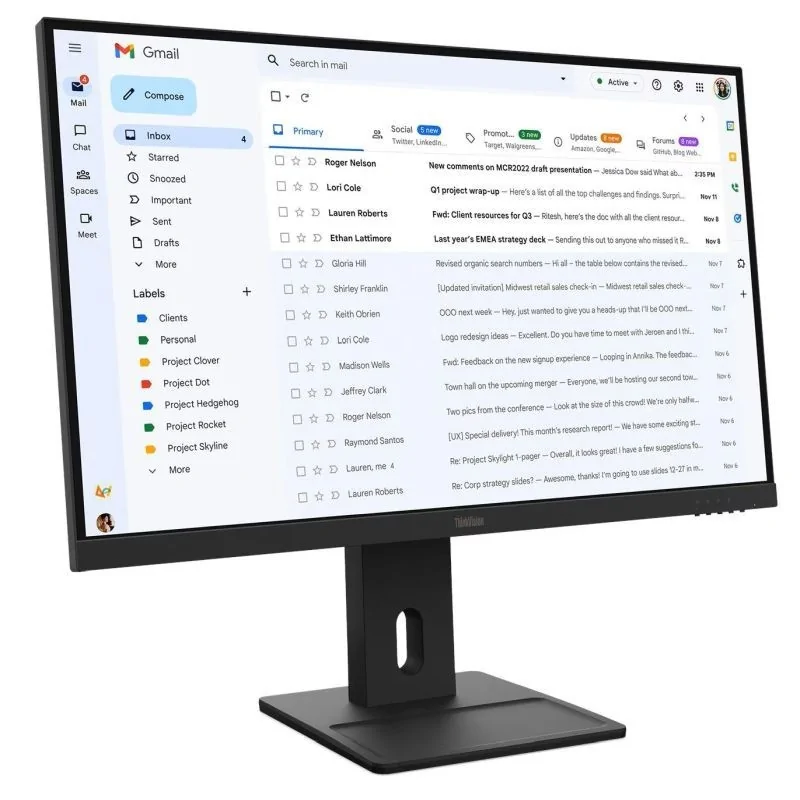 Lenovo ThinkVision E27-40 to 27-calowy monitor, który dobrze odnajduje się w każdym nowoczesnym biurze, niezależnie od rodzaju wykonywanej pracy. Zastosowana matryca IPS oferuje stabilny, wyraźny obraz oraz naturalne odwzorowanie barw, co ma znaczenie zarówno przy codziennych zadaniach biurowych, jak i przy bardziej wymagających aplikacjach graficznych.Dzięki częstotliwości odświeżania 100 Hz obraz jest płynniejszy, a brak migotania podświetlenia przekłada się na mniejsze zmęczenie wzroku podczas wielogodzinnej pracy. Monitor został również zaprojektowany tak, aby zapewnić wygodę użytkowania — ma wąskie ramki, co ułatwia tworzenie zestawów wielomonitorowych, oraz funkcje ergonomiczne, które pozwalają lepiej dopasować go do stanowiska pracy.