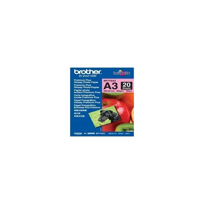 Brother Glossy Photo Paper, BP71GA3, foto papier, połysk, biały, A3, 260 g/m2, 20 szt., atrament