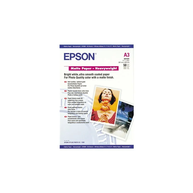 Epson Matte Paper Heavyweight, C13S041261, foto papier, matowy, silny typ biały, Stylus Photo 1270, 1290, A3, 167 g/m2, 50 szt.