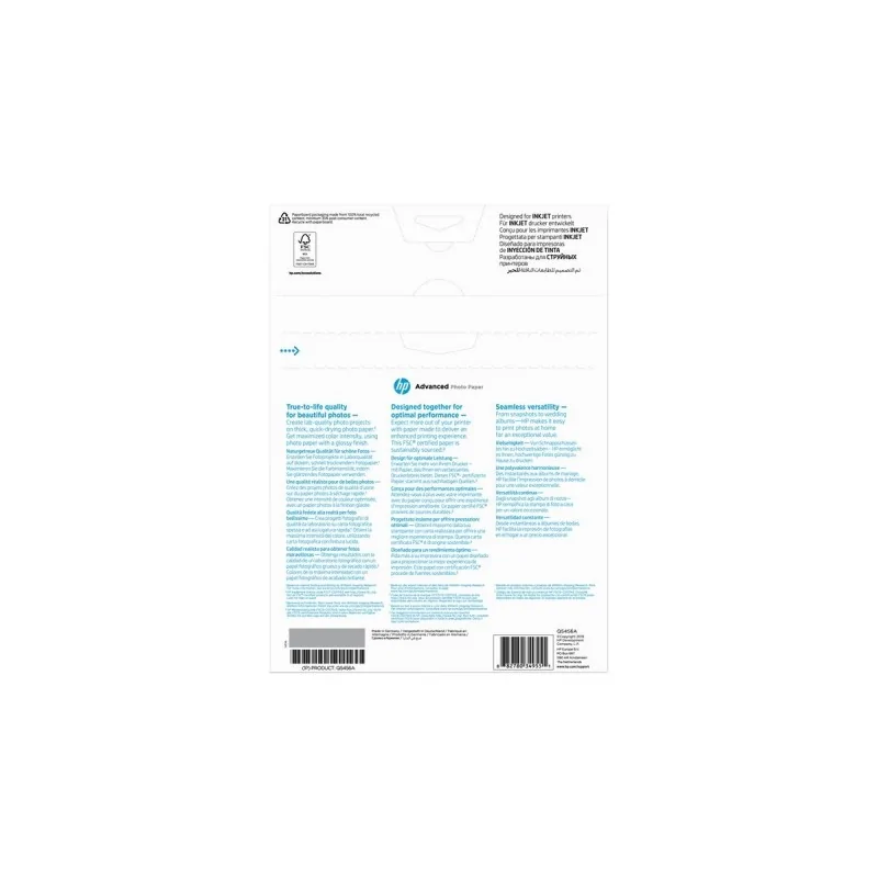 HP Advanced Glossy Photo Pa, Q5456A, foto papier, połysk, zaawansowany typ biały, A4, 250 g/m2, 25 szt., atrament