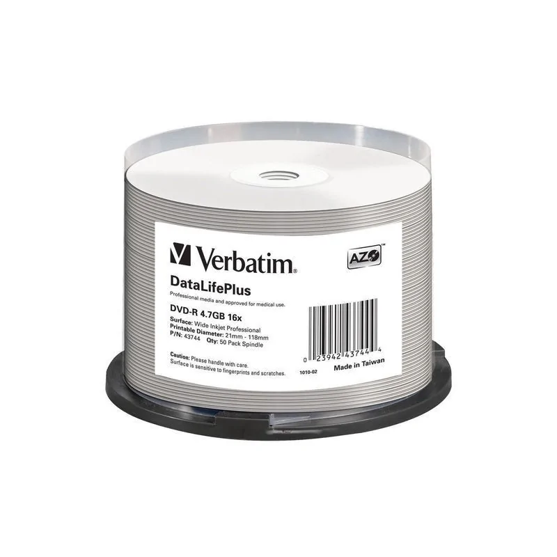 Nawierzchnia płyt Verbatim jest przystosowana do drukarek atramentowych. Takie płyty umożliwiają nadrukowywanie dowolnych motywów na całej powierzchni.