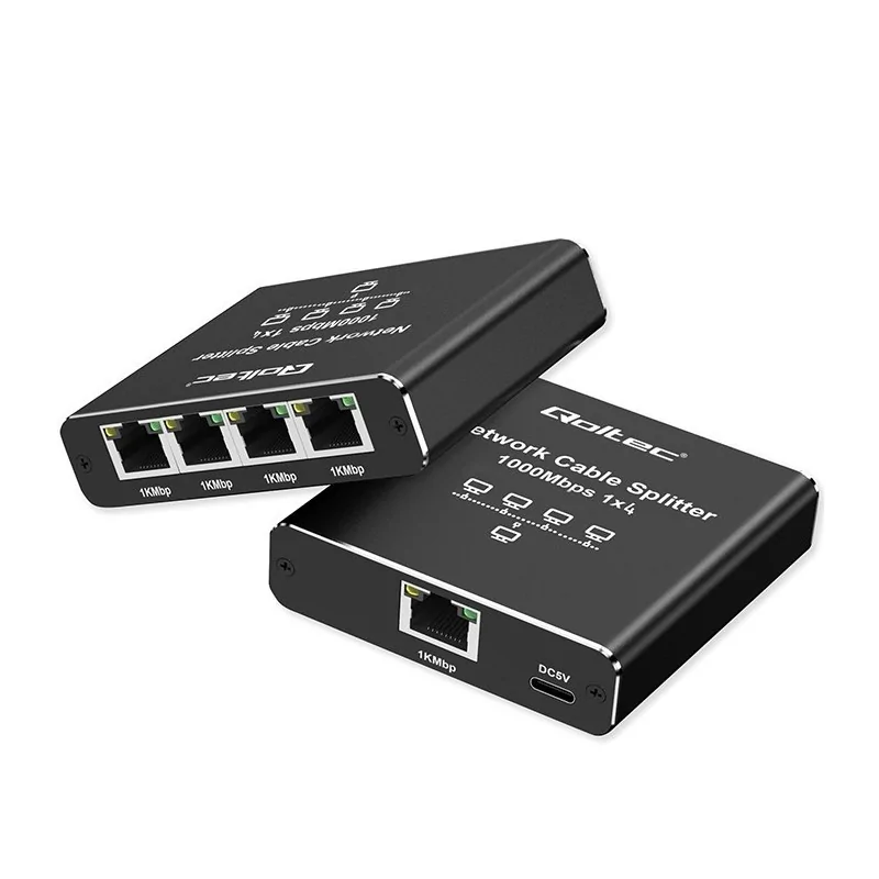 Rozdzielacz splitter Ethernet mini SWITCH 1x4 RJ45 | 1000 Mb/s | USB-C | Aluminium