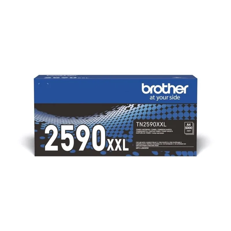 Toner TN-2590XXL zapewnia wydajność do 5000 stron przy standardowym pokryciu 5% zgodnie z normą ISO/IEC 19752, gwarantując głęboki i intensywny czerń w każdym wydruku. Oryginalna formuła tonera Brother zapewnia wyraźne, ostre odwzorowanie tekstu i grafik, niezawodną pracę urządzenia oraz trwałe wydruki odporne na blaknięcie i rozmywanie.