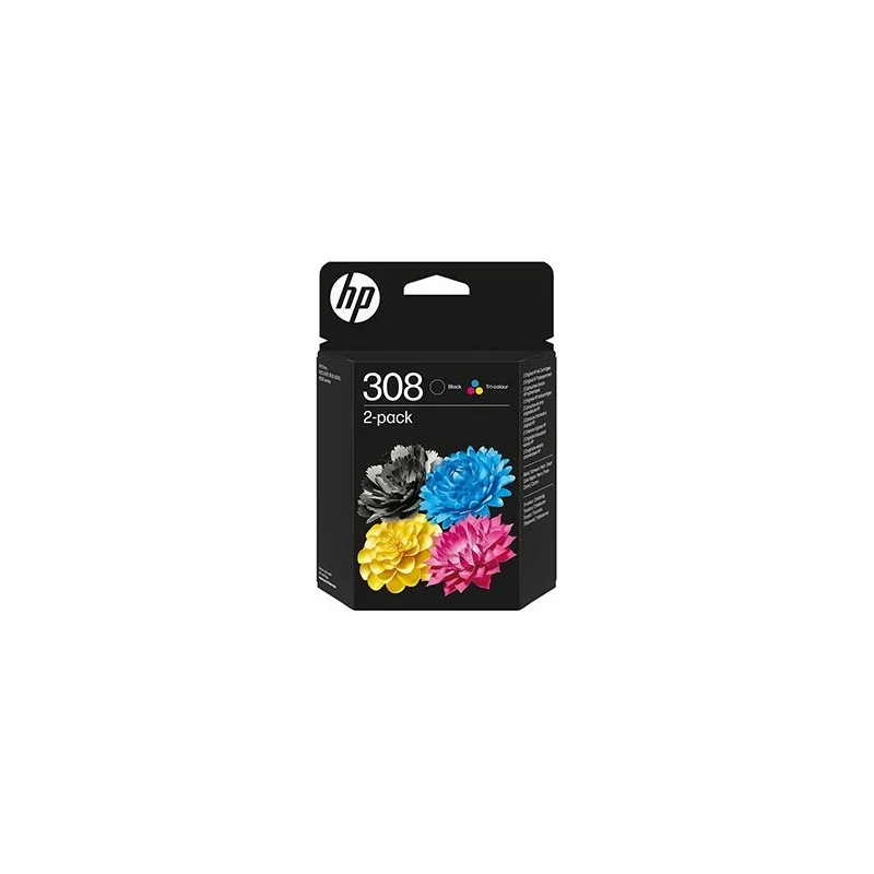 Podwójny zestaw trójkolorowych/czarnych tuszów HP 308 (6L6S6UE)