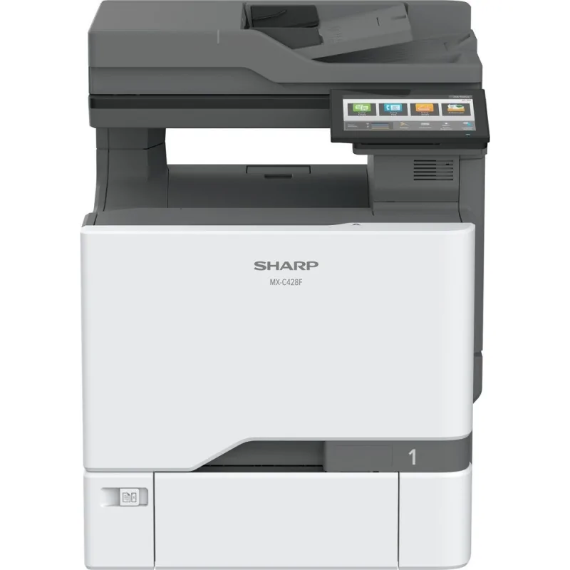 Model MX-C428F to kolorowe urządzenie wielofunkcyjne A4 „4-w-1” oferujące wiele funkcji zwiększających wydajność, które jest w stanie sprostać potrzebom małych grup roboczych oraz średnich i dużych biur.