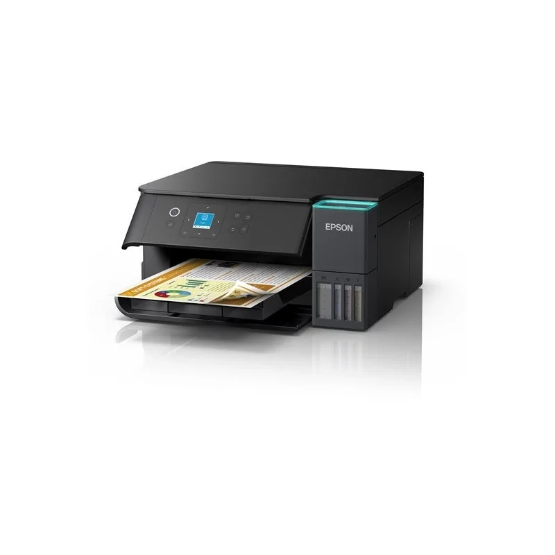 Drukarki EcoTank zapewniają bezproblemowe drukowanie w domu - Pojemniki na atrament o dużej pojemności można uzupełniać bez bałaganu, a butelki z blokadą zaprojektowano tak, aby dany kolor atramentu można było wlać tylko do odpowiadającego mu pojemnika. Wskaźnik poziomu atramentu znajduje się z przodu urządzenia, wyraźnie informując użytkownika, kiedy należy go uzupełnić. -